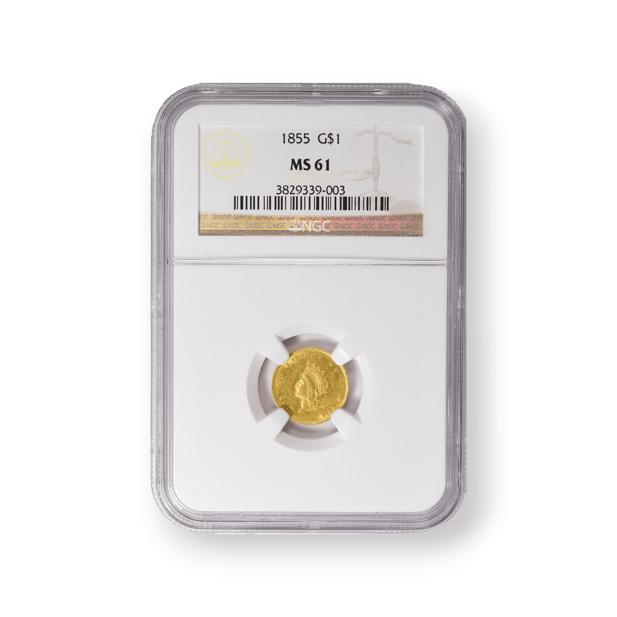 A $1 Gold Dollar Type 2 Indian Princess coin with an NGC Generic Date attribution is a significant and historic piece of American numismatic heritage. Typically containing a small amount of pure gold, these coins feature a design with the portrayal of an Indian Princess on the obverse and a wreath with the denomination on the reverse. Highly valued by collectors and investors for their historical significance and the enduring appeal of early American gold coinage, the "Generic Date" label indicates that they are categorized based on their gold content and design rather than a specific year of minting. This provides a convenient option for those looking to acquire these unique gold coins with the assurance of an NGC grading.