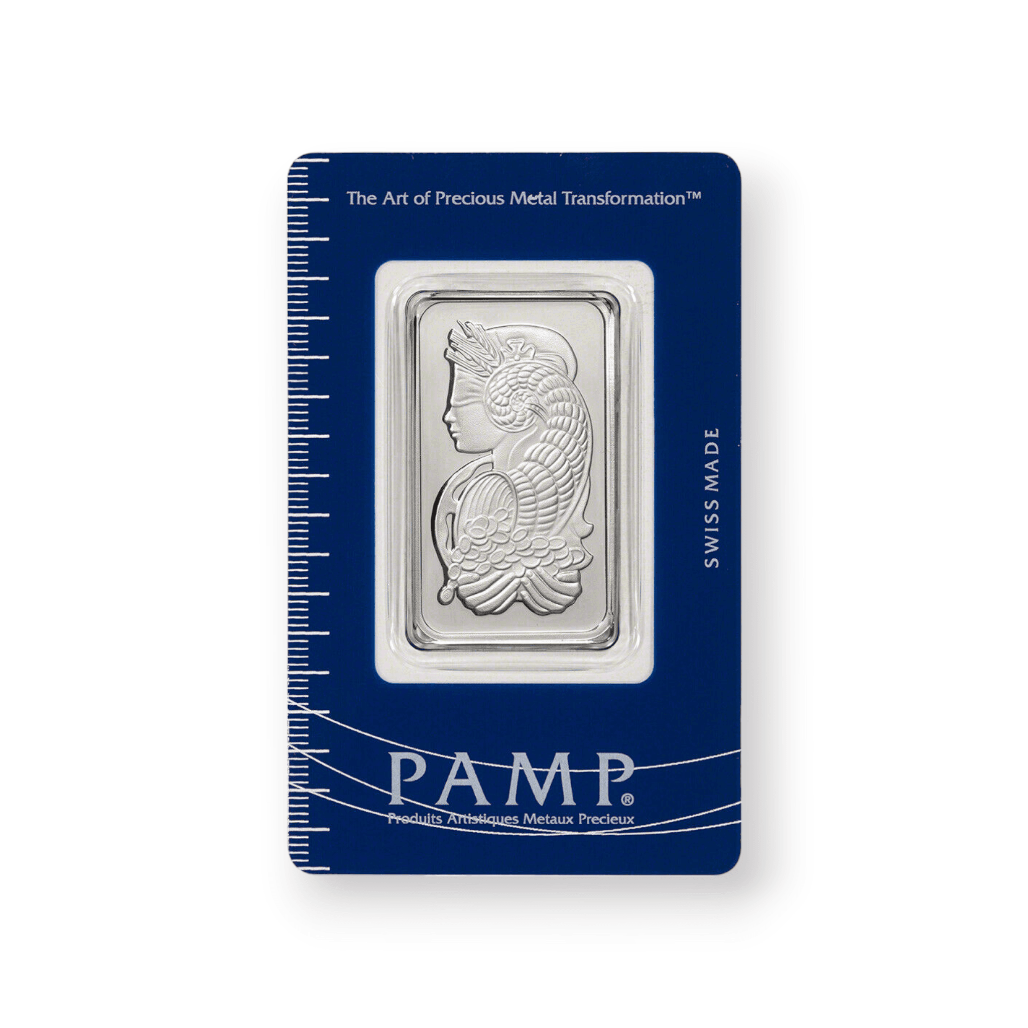 The 1 oz Platinum Bar PAMP Suisse Fortuna is a premium investment-grade precious metal product manufactured by PAMP (Produits Artistiques Métaux Précieux), one of the world's leading bullion brands based in Switzerland. The bar features the famous design of Lady Fortuna, the Roman goddess of fortune and luck, which is highly revered among collectors and investors. Each bar contains one ounce of .9995 fine Platinum and comes sealed in a protective assay package that includes a unique serial number and details verifying the bar's weight and purity. The combination of PAMP Suisse's reputation for quality and the exquisite design makes this Platinum bar a sought-after item for both investors diversifying their portfolios with precious metals and collectors aiming for aesthetic appeal.