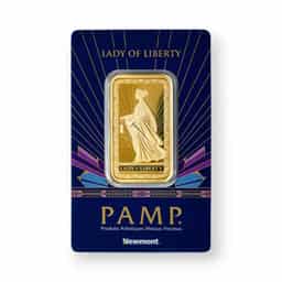 The 1 oz Gold Bar PAMP/Newmont Lady of Liberty (New in Assay) is a premium gold bullion product, created in collaboration between PAMP Suisse and Newmont, one of the world's largest gold mining companies. This bar is made from .9999 fine gold, ensuring exceptional purity. The design features the elegant Lady of Liberty, a symbol of freedom and independence, beautifully engraved on the front. Each bar comes sealed in an assay card, certifying its authenticity, weight, and purity, providing additional security and peace of mind for investors. The partnership between PAMP and Newmont combines top-tier craftsmanship with ethically sourced gold, making this bar a popular choice for both investors and collectors.