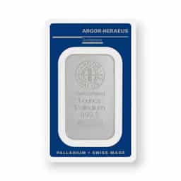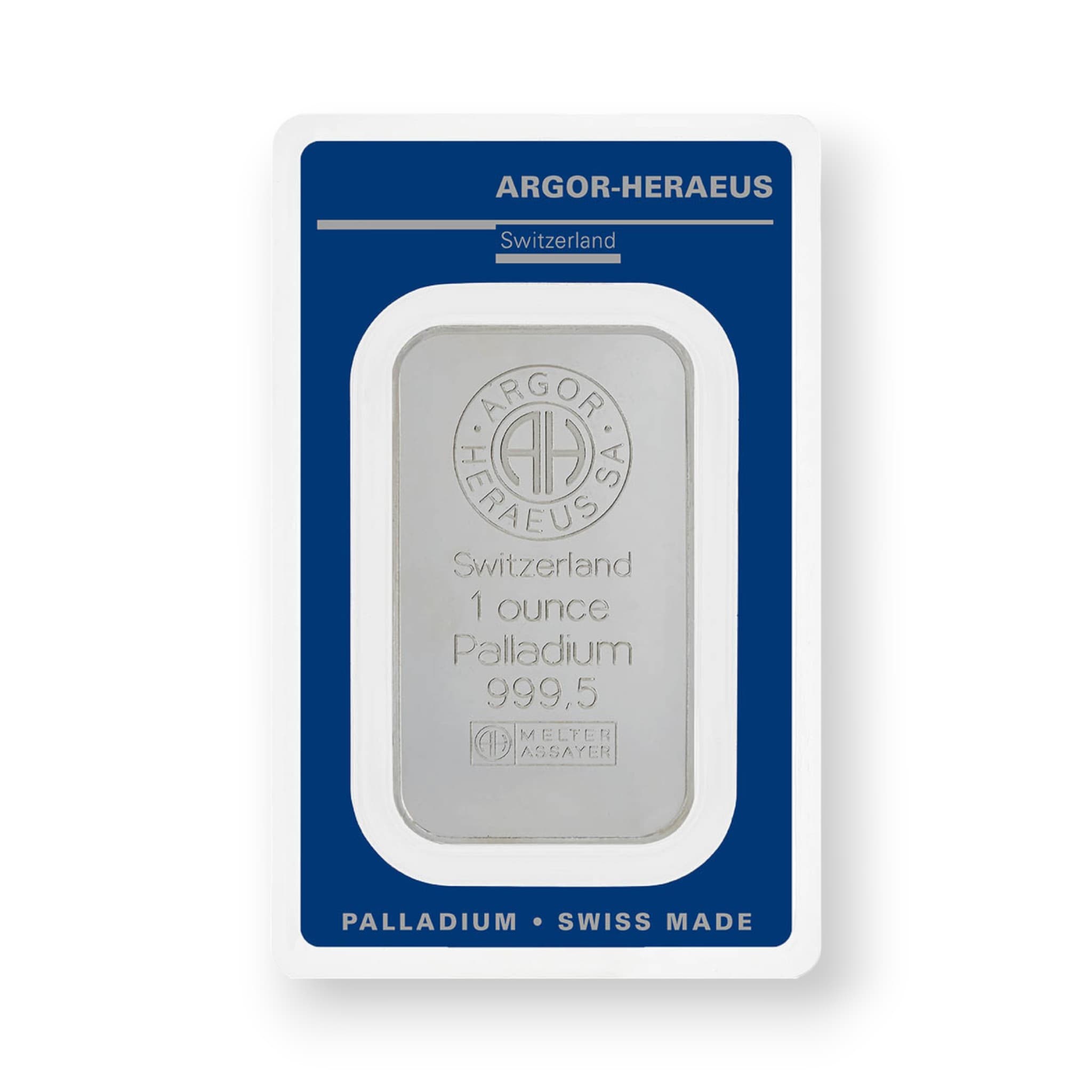 1 oz Palladium Bar Argor Heraeus .9995 Fine Sealed in Carded Assay