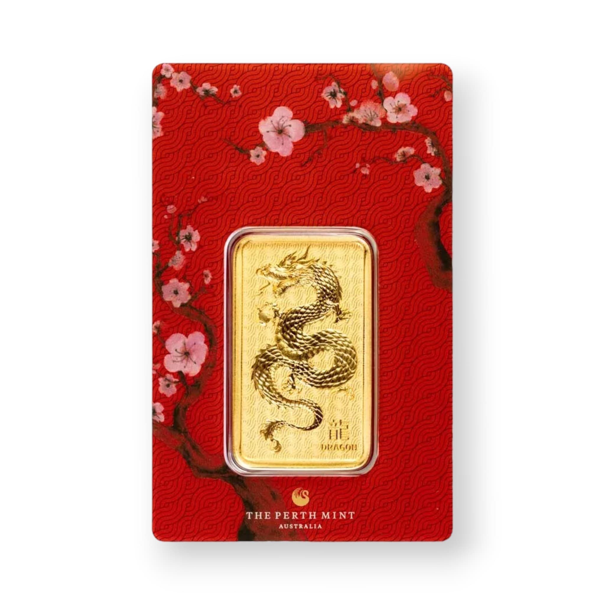 1 oz Perth Mint Lunar Dragon Gold Bar .9999 Fine Sealed in Carded Assay