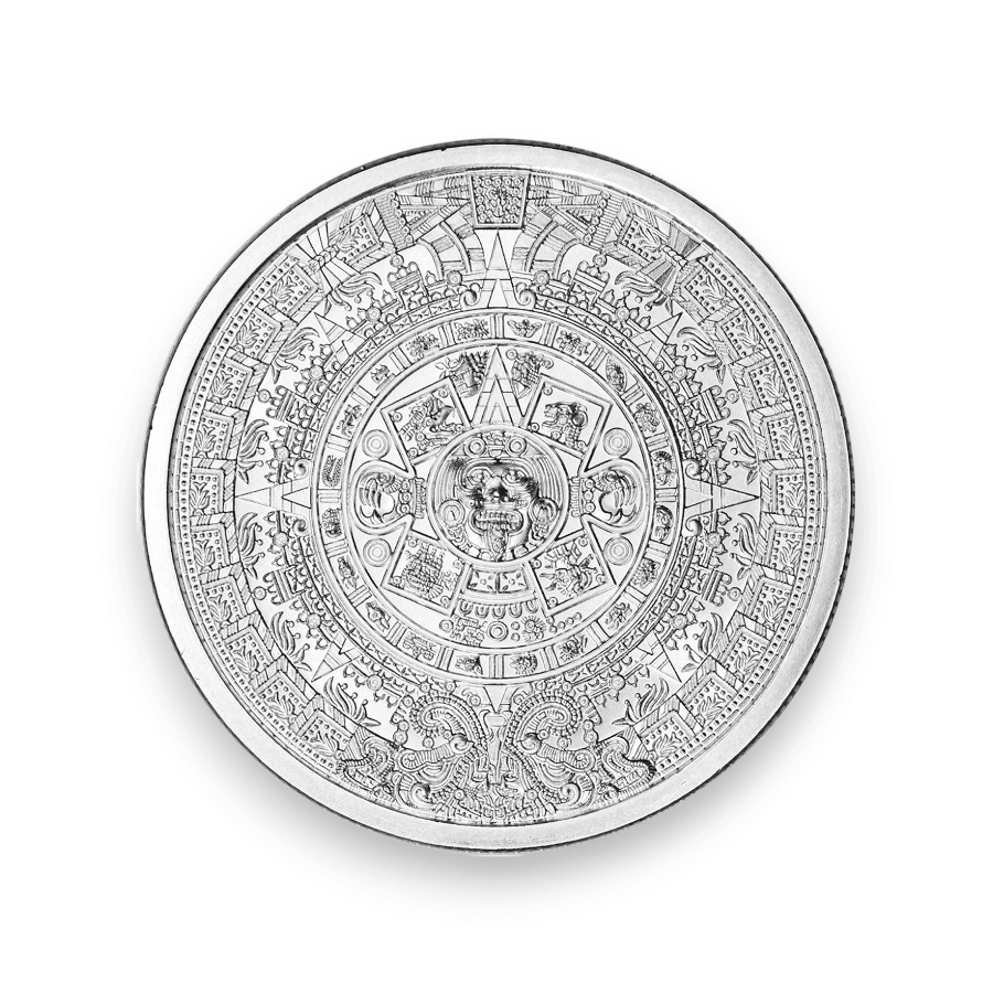 The 1 oz Silver Aztec Calendar Round, minted with a .999 fine silver purity, is a beautifully crafted piece that pays homage to the rich history and intricate artistry of the Aztec civilization. This round features a detailed reproduction of the Aztec calendar, one of the most iconic symbols of ancient Mesoamerican culture, known for its complex and precise mathematical and astronomical calculations. The obverse typically showcases the Aztec calendar in stunning detail, allowing collectors and enthusiasts to appreciate the depth of Aztec knowledge and craftsmanship. The reverse of the round might feature an image representing Aztec mythology or royalty, such as the depiction of Cuauhtémoc, the last Aztec Emperor, adding to the round's historical allure. These silver rounds are not only valued for their silver content but also for their cultural significance and the craftsmanship involved in their design, making them a popular choice among those interested in precious metals and ancient civilizations. The 1 oz Silver Aztec Calendar Round is a striking addition to any collection, offering a piece of history and artistry in fine silver.