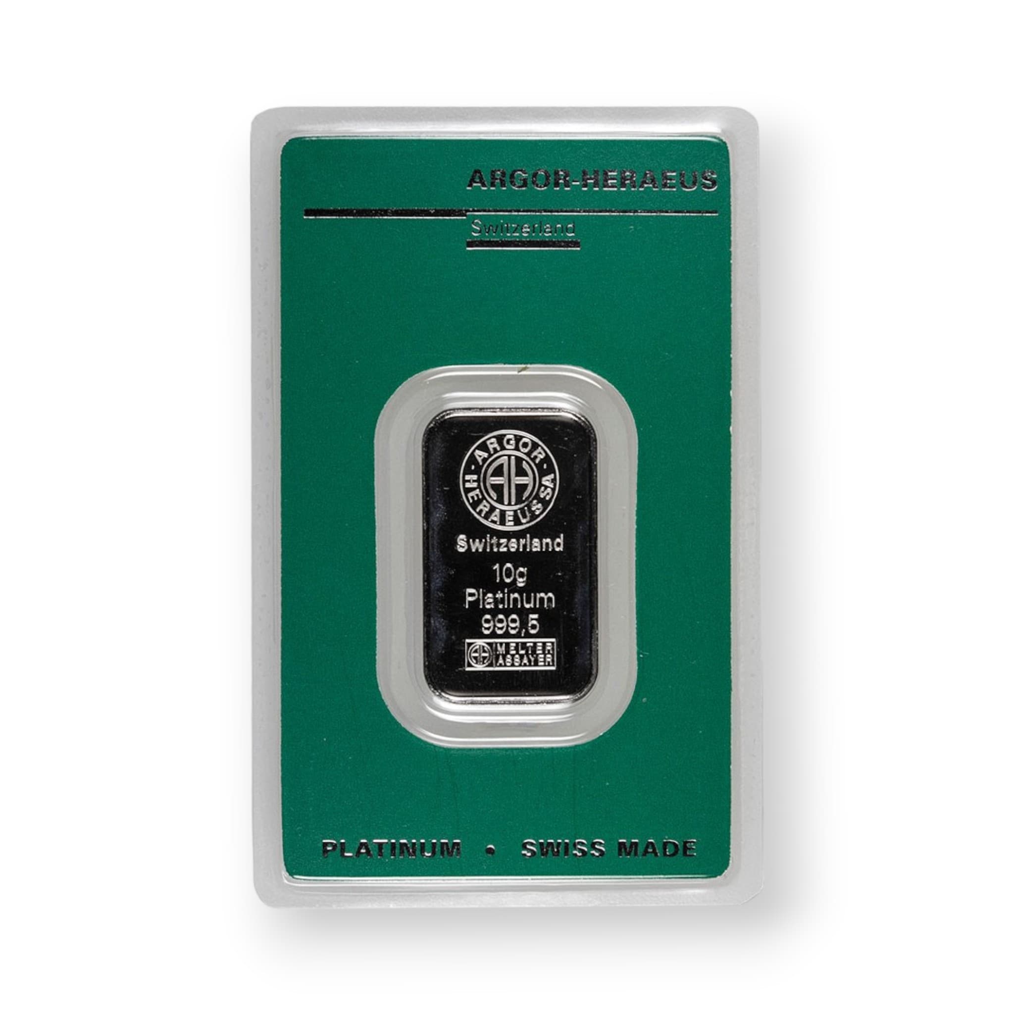 10 Gram Platinum Bar Argor Heraeus .9995 Fine Sealed in Carded Assay
