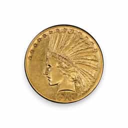 The $10 Indian Head Gold Eagle, also known as the Indian Head Eagle, is a notable and aesthetically captivating coin that was minted from 1907 to 1933. Designed by Augustus Saint-Gaudens, one of the most renowned sculptors in American history, this coin showcases a Native American chief in full headdress on the obverse and a majestic bald eagle standing on a bundle of arrows and an olive branch on the reverse. The design is celebrated for its intricate and detailed artistry, setting it apart from many other coins of its time. With a gold content of 0.48375 ounces and a diameter of 27 millimeters, the $10 Indian Head Gold Eagle holds both historical significance and intrinsic value, making it a cherished choice among collectors and investors who appreciate its unique beauty and numismatic importance.