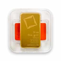 The 10 oz Valcambi Gold Bar, sealed and accompanied by a carded assay, is a premium investment product from one of the world's leading precious metals refiners, Valcambi Suisse. This gold bar is minted with .9999 fine gold, representing not only a substantial investment in one of the most coveted precious metals but also a symbol of wealth and stability. Each bar comes sealed in protective packaging, ensuring its condition and purity are preserved from the mint to the investor. The accompanying carded assay certifies the bar's weight, gold purity, and includes a unique serial number, providing an added layer of security and authenticity. Valcambi Suisse is renowned for its exceptional craftsmanship and quality standards, making this 10 oz gold bar a preferred choice for serious investors seeking to diversify their portfolio with gold bullion. The sleek design and refined finish of the bar, along with the reputation of Valcambi, make it a prestigious and valuable asset for both collectors and investors alike.
