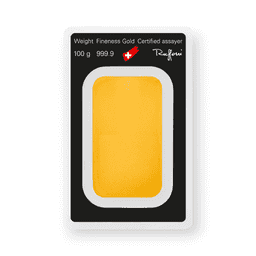 100 Gram Argor Heraeus Gold Bar .9999 Fine Sealed with Carded Assay