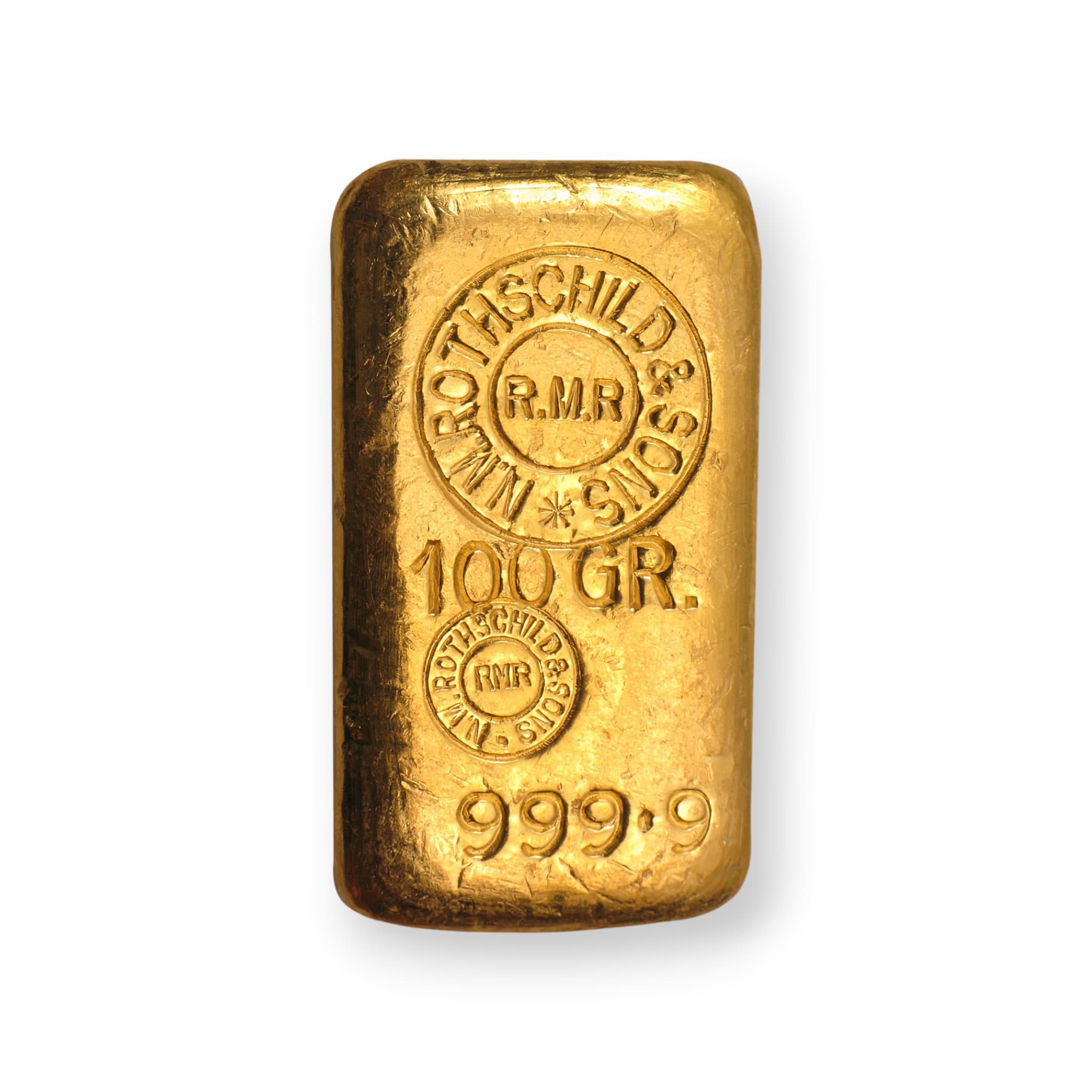 100 Gram Rothschild & Sons Gold Bar Vintage .9999 Fine