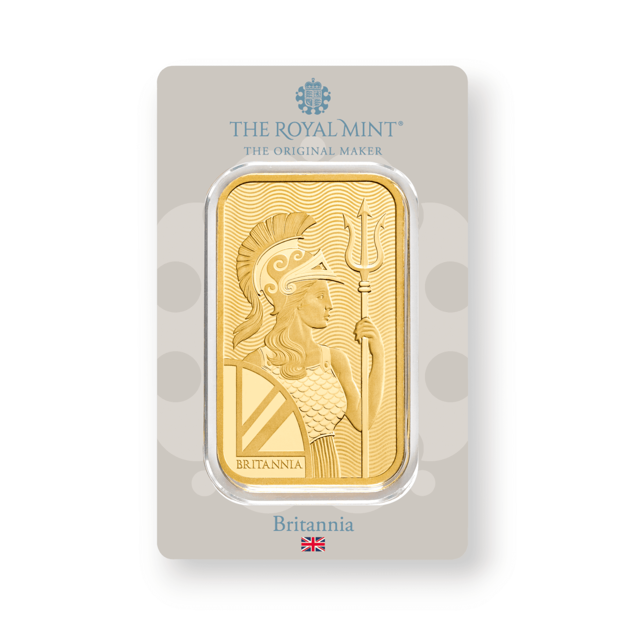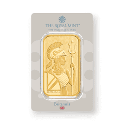 The 100 Gram Royal Mint Britannia Gold Bar, with a .9999 fine purity and sealed in an assay card, is a prestigious and substantial offering from the Royal Mint, renowned for its historic and expert minting capabilities. This impressive gold bar contains 100 grams of 99.99% pure gold, exemplifying the Royal Mint's commitment to high standards in precious metal refining. The design typically features Britannia, a symbol of Britain's storied heritage and enduring strength, which adds significant historical and aesthetic appeal to the bar. Encased in a tamper-evident assay card, the gold bar is both protected and authenticated, with the card providing essential details such as the bar's weight, its ultra-high purity, and a unique serial number for security and verification purposes. The 100 Gram Royal Mint Britannia Gold Bar is highly sought after by investors and collectors alike, valued for its blend of significant gold content, exceptional purity, and the rich legacy of the Royal Mint, making it an ideal choice for those looking to invest in a sizeable and high-quality gold asset.