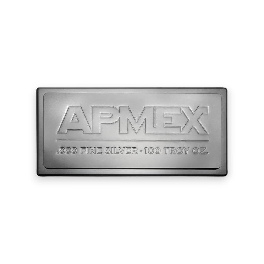 The 100 oz Apmex Stackable Silver Bar is crafted from .999 fine silver and designed for efficient storage. Weighing 100 troy ounces (approximately 3,110.35 grams), this bar features a stackable design with beveled edges, making it ideal for secure stacking. The obverse side of the bar prominently displays the APMEX logo, along with weight and purity specifications, while the reverse side typically features a repeating pattern or additional branding elements for added security. Produced to high-quality standards, this bar ensures consistent weight and purity, making it a dependable choice for investors and collectors looking to add a substantial amount of silver to their portfolios.