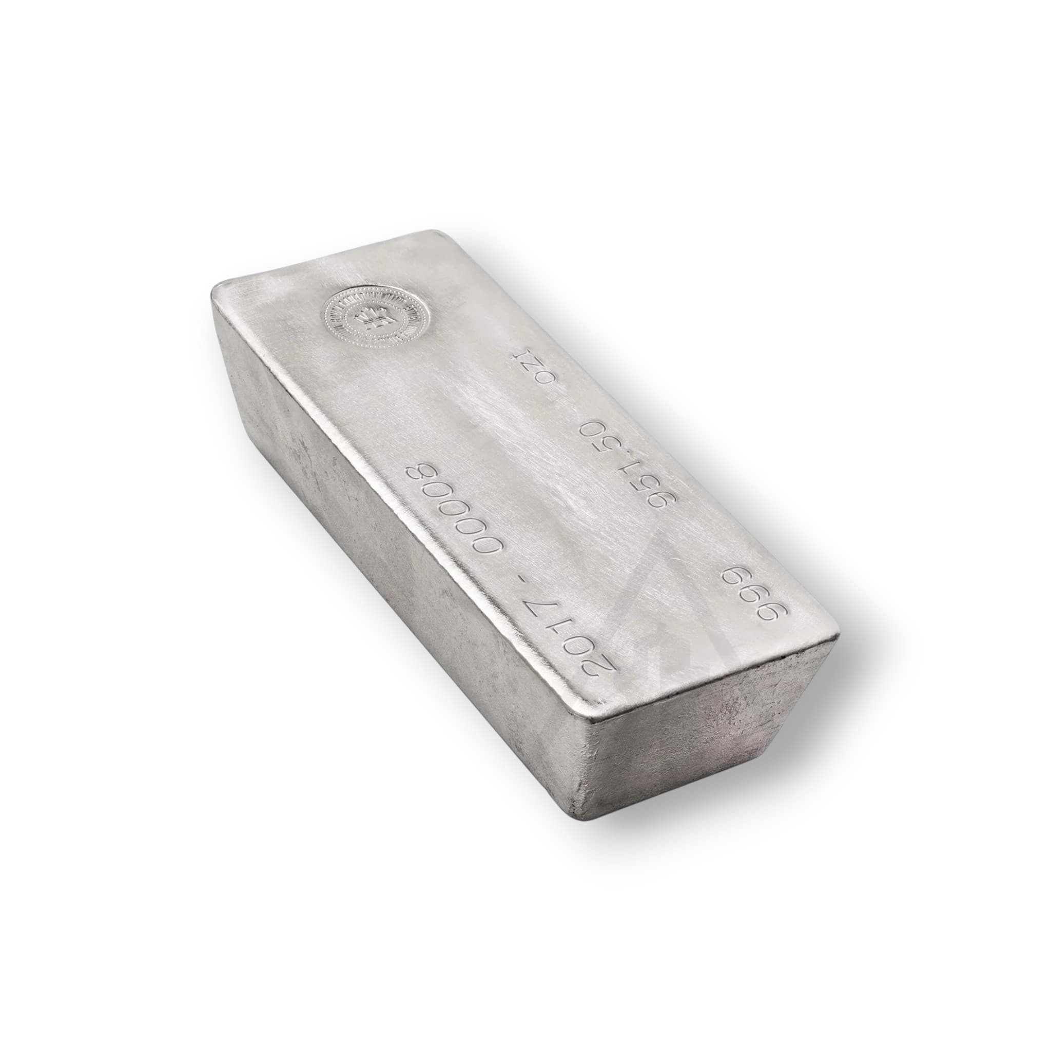 The 1000 oz COMEX Exchange Delivery Silver Bar (.999 fine) refers to a standard-delivery bar refined to precise COMEX specifications—exactly 1,000.00 troy ounces of .999 fine silver—produced by approved refiners such as Asahi, Republic Metals, and Metalor. Each bar is individually stamped with its serial number, purity, refiner hallmark, and exact weight, and must meet strict assay and dimension standards for exchange delivery. These uniform “even weight” bars are primarily used for settlement in COMEX futures contracts and institutional trade, stored within accredited vaults, and represent the benchmark format for wholesale silver delivery across global bullion markets.