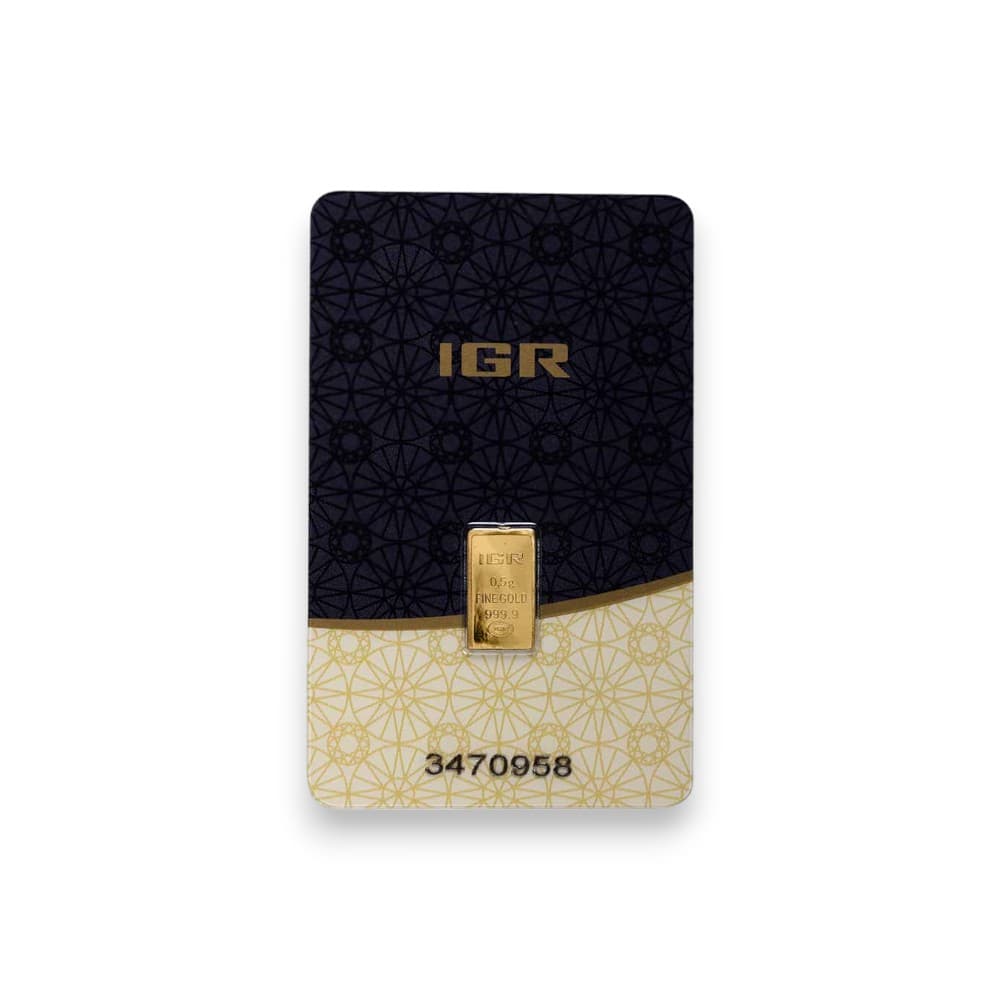 The 1/2 Gram IGR Gold Bar Sealed in Carded Assay .9999 Fine is a high-quality gold bar produced by the renowned precious metals manufacturer, IGR (Istanbul Gold Refinery). Established in 1986, IGR is a leading refiner and manufacturer of precious metals, renowned for its strict adherence to international standards and quality control measures. This particular gold bar weighs 0.5 grams and boasts a fineness of .9999, indicating that it is composed of 99.99% pure gold. The bar is sealed in a tamper-evident carded assay, ensuring its authenticity and protecting it from any potential damage or contamination. IGR's commitment to excellence and transparency has earned them a reputation as a trusted name in the precious metals industry, making this 1/2 Gram Gold Bar a valuable addition to any collection or investment portfolio.