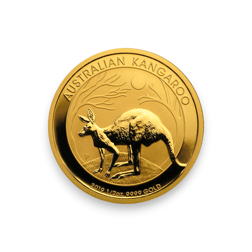 The 1/2 oz Australian Gold Kangaroo, minted in .9999 fine gold and presented in a protective capsule, is a distinguished product from the Perth Mint, Australia's oldest operating mint. This coin contains half an ounce of 99.99% pure gold and is part of the acclaimed Gold Kangaroo series, which is known for its dynamic and annually changing kangaroo designs. The 'Random Date' specification implies that the specific year of minting varies, offering collectors a diverse range of designs, each depicting the kangaroo – a national symbol of Australia's wildlife. The 1/2 oz size offers a substantial gold content, balancing collectibility and investment appeal. Encased in a capsule to maintain its pristine condition, the 1/2 oz Australian Gold Kangaroo is a popular choice among collectors and investors alike, valued for its high purity, the artistic and ever-changing kangaroo imagery, and the Perth Mint's renowned legacy in producing high-quality gold coins.