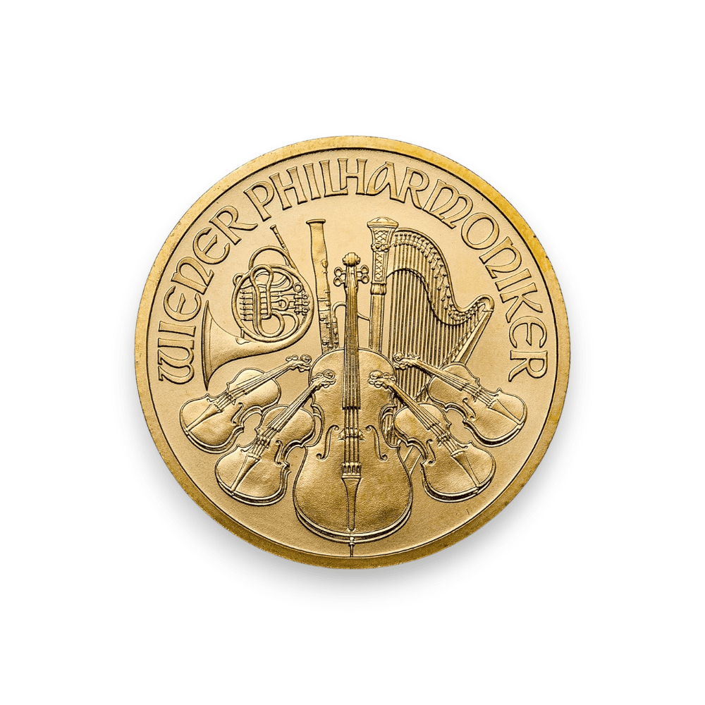 The 1/2 oz Austrian Philharmonic Gold Coin, issued with a random date, is an esteemed collectible in the precious metal market. Struck by the Austrian Mint, it comprises half an ounce of 99.99% pure gold. The design pays homage to Austria's rich musical history, featuring the Great Organ in Vienna's Musikverein concert hall on the obverse, and a selection of orchestral instruments on the reverse. The 'Random Date' designation adds a unique aspect to each coin, as collectors receive pieces from various years of minting. This coin is not only a valuable gold investment but also a piece of cultural significance, appealing to both investors and enthusiasts of classical music and European heritage.