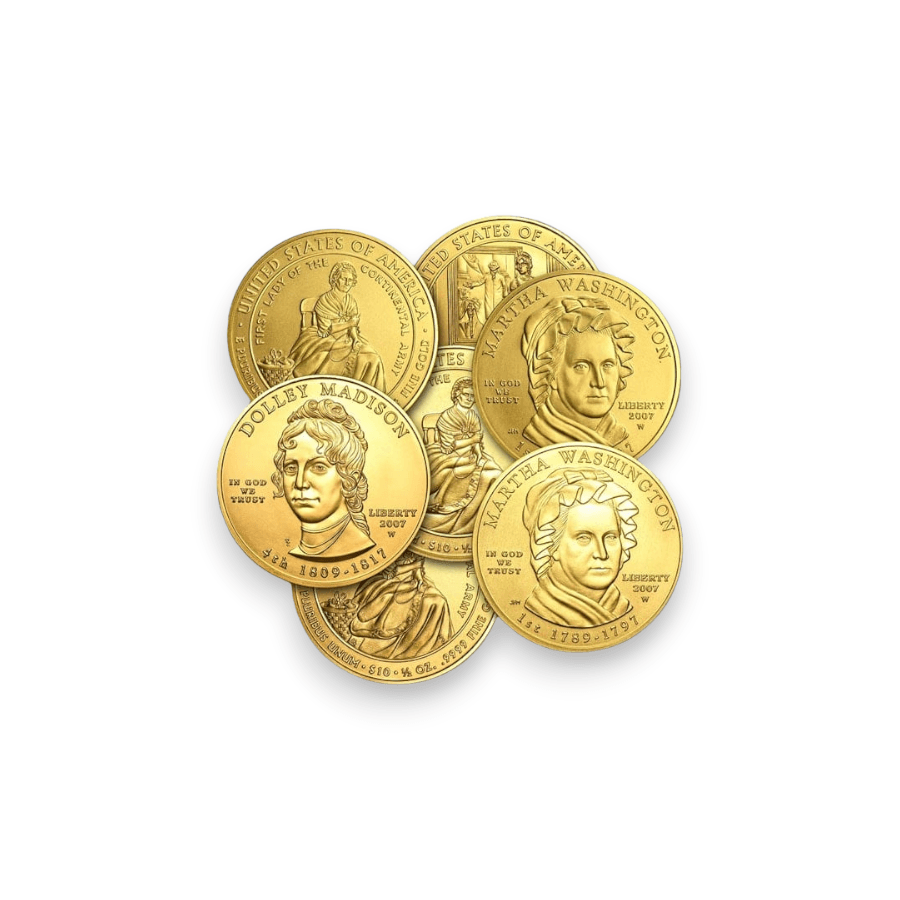 The 1/2 oz First Spouse United States Gold Coin, available in both Brilliant Uncirculated (BU) and Proof finishes, honors the contributions and legacies of the First Ladies of the United States. Struck in .9999 fine gold, this coin contains a half troy ounce of pure gold, making it a valuable addition to any collection or investment portfolio. Beyond its precious metal content, its designs capture the essence and narratives of the various First Ladies it represents, showcasing the U.S. Mint's dedication to detail and artistry. Whether admired for the vibrant luster of BU or the crisp, mirror-like background of the Proof finish, the First Spouse Gold Coin is a blend of American history, numismatic art, and precious metal investment.