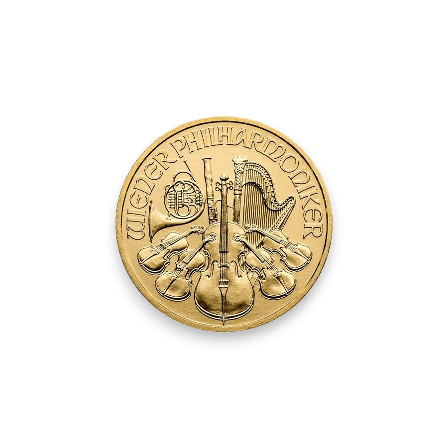 The 1/4 oz Austrian Philharmonic Gold Coin, offered with a random date, is a beautifully crafted and highly regarded asset in the precious metals market. Minted by the Austrian Mint, it contains a quarter ounce of 99.99% pure gold. The coin's design is a tribute to Austria's classical music heritage, featuring the Great Organ of Vienna's Musikverein concert hall on the obverse and a variety of orchestral instruments on the reverse. The 'Random Date' aspect provides collectors with coins from different years of minting, adding an element of historical interest and variety. This coin is sought after for both its gold content and cultural significance.