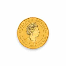 The 1/4 oz Gold Australian Florin, minted with a .9999 fine gold purity, is a special issue that pays homage to Australia's rich numismatic history, specifically to the iconic Florin coinage. Available in random date issues, this gold coin is a modern tribute to the original silver Florin coins that circulated in Australia from 1910 until the introduction of decimal currency in 1966. The design of the gold Florin typically draws inspiration from the historic Florin's motifs, which may include the iconic Australian Coat of Arms—a symbol of national unity and pride—depicting a kangaroo and an emu. The obverse of the coin features the effigy of Queen Elizabeth II, reflecting Australia's status as a Commonwealth nation. Weighing 1/4 ounce, this coin combines the investment appeal of .9999 fine gold with the nostalgic and cultural significance of the Florin's design, making it a sought-after item for collectors and investors alike. The 1/4 oz Gold Australian Florin represents a unique fusion of Australia's historical heritage and the timeless value of gold, appealing to those who appreciate the enduring legacy of Australian coinage as well as the tangible benefits of gold investment.