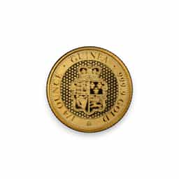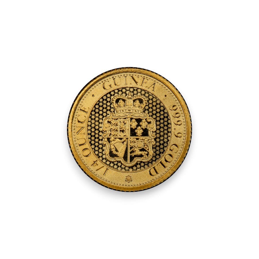 The 1/4 oz Gold St. Helena Rose Crown Guinea, minted with a .9999 fine gold purity, represents a modern tribute to the historic guinea coins, with a design that honors the rich numismatic history of Britain and its territories. Issued by St. Helena, a small British Overseas Territory located in the South Atlantic Ocean, these coins feature the Rose Crown Guinea design, a symbol of Britain's extensive numismatic heritage. The obverse typically displays the effigy of Queen Elizabeth II, signifying St. Helena's status as a British territory, while the reverse showcases the intricate Rose Crown shield, echoing designs from the golden age of British coinage. Available in random date issues, this coin appeals to collectors and investors for its blend of historical homage and investment-grade gold. The 1/4 oz Gold St. Helena Rose Crown Guinea is celebrated for its fine craftsmanship, detailed design, and the purity of its gold, making it a desirable addition to any collection or investment portfolio, offering a piece of history encapsulated in .9999 fine gold.