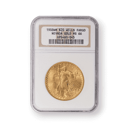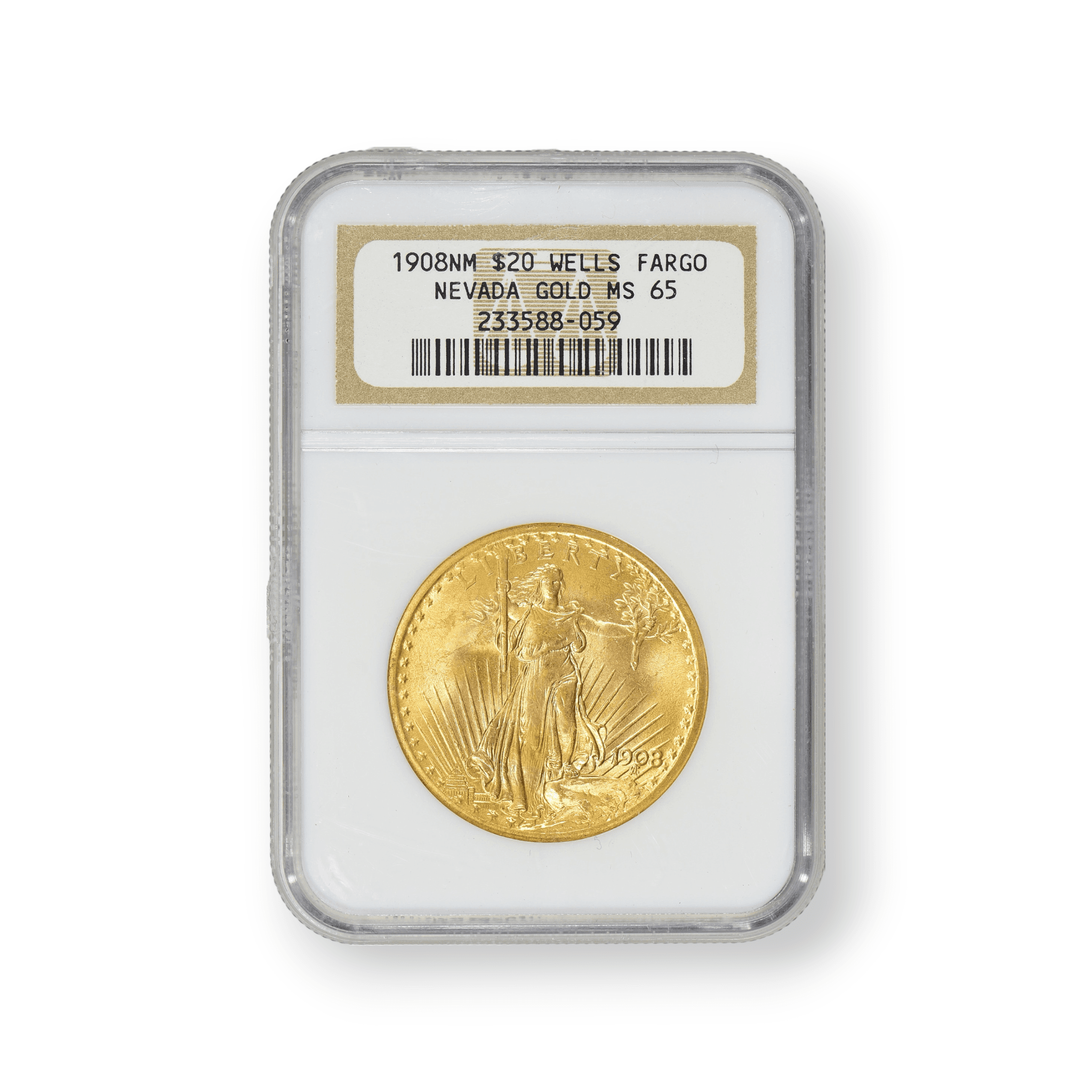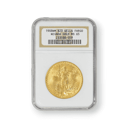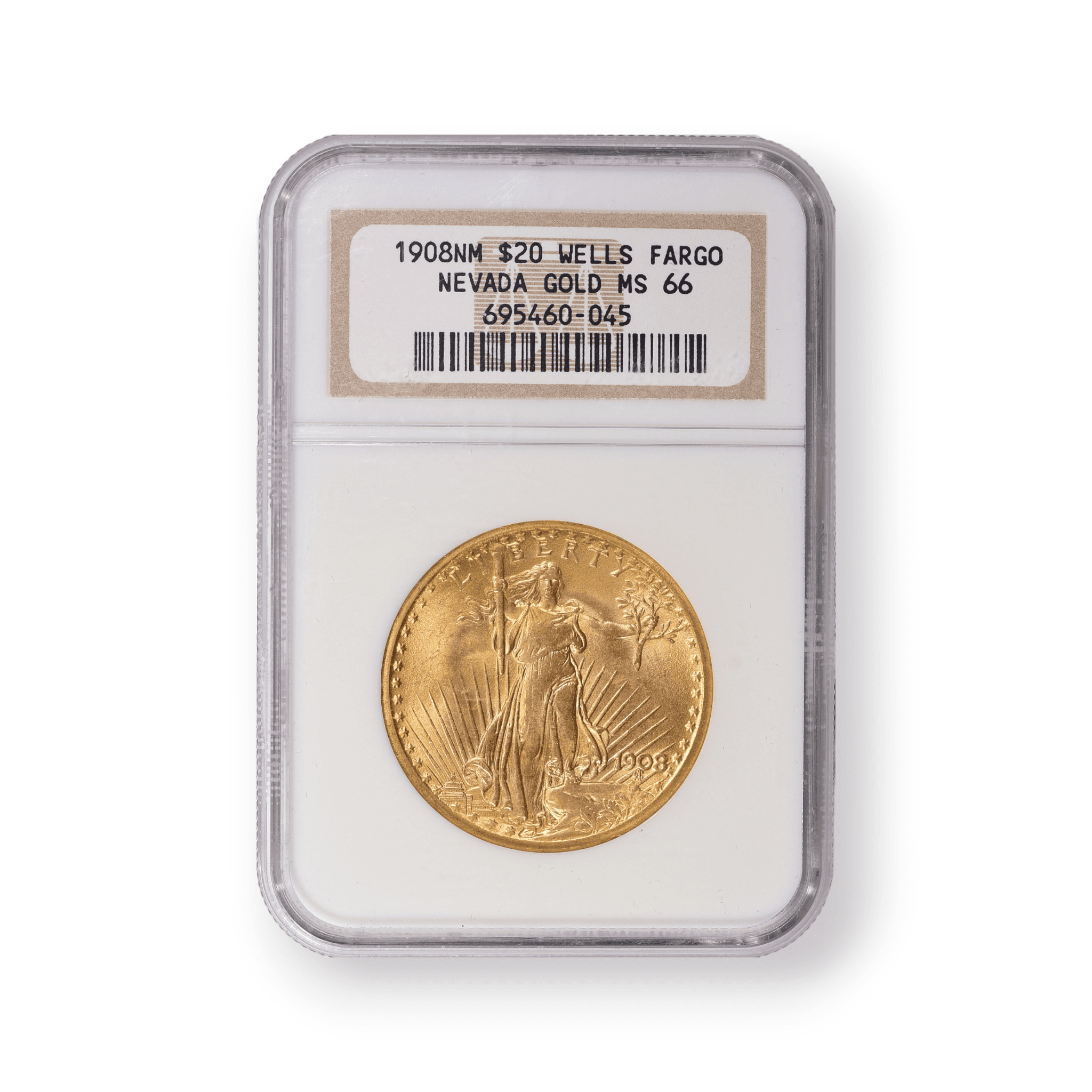 1908 No Motto Wells Fargo $20 St. Gaudens Double Eagle Gold NGC Certified