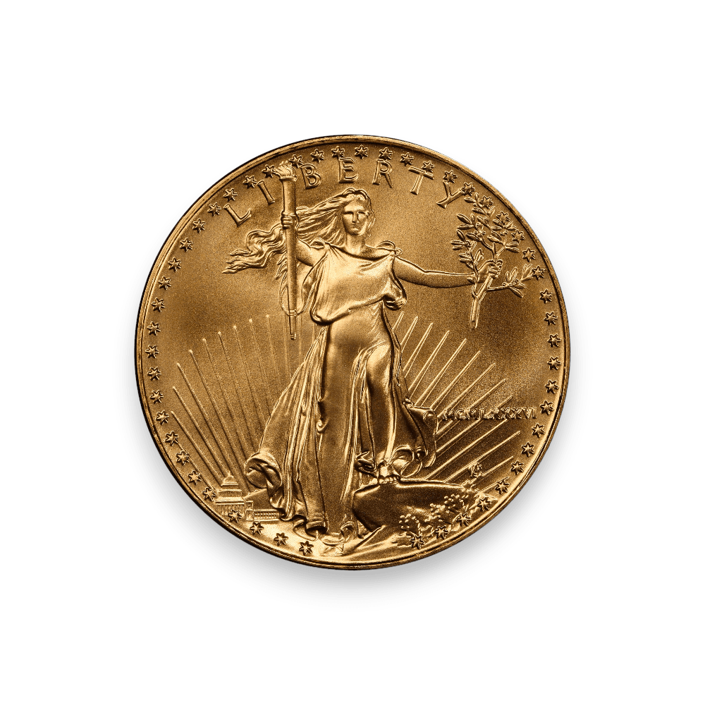 The 1986 1/2 oz American Gold Eagle Coin, bearing the Roman numeral "MCMLXXXVI" for the year 1986, is a significant first issue in the American Gold Eagle series. Minted by the United States Mint, it contains 1/2 an ounce of gold with a purity of 22 karats, or .9167 fineness. The obverse features the iconic Saint-Gaudens design of Lady Liberty, and the reverse, designed by Miley Busiek, showcases a family of eagles. The mintage for the 1986 1/2 oz Gold Eagle was approximately 599,566 coins. This inaugural issue is highly prized by collectors and investors for its blend of historical significance, artistic design, and gold content, making it a distinguished piece in the American Gold Eagle series.