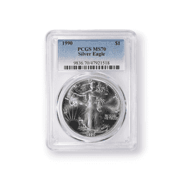The 1990 $1 American Silver Eagle, certified by the PCGS, is a notable piece in the realm of precious metal collecting. It features the classic Walking Liberty design by Adolph A. Weinman on the obverse, a beacon of progress and freedom, and John Mercanti's heraldic eagle on the reverse, a symbol of American strength and dignity. This coin, struck from one ounce of .999 fine silver, has a mintage of 5,840,110 pieces. PCGS certification ensures the coin's condition and authenticity, making it a sought-after item for both its numismatic significance and its intrinsic silver value.