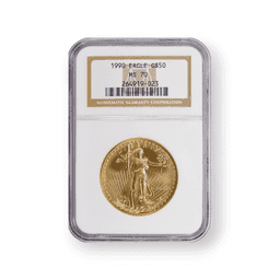 The 1990 (MCMXC) 1 oz American Gold Eagle, NGC Certified, holds a special place in the lineage of the American Gold Eagle series minted by the United States Mint. Composed of .9167 fine gold (22 karat), this coin features the iconic obverse design of Lady Liberty by Augustus Saint-Gaudens and the familial eagle imagery by Miley Busiek on the reverse, symbolizing American strength and unity. The NGC (Numismatic Guaranty Corporation) certification attests to the coin's authenticity and condition, making it a sought-after piece for collectors and investors alike. As a certified issue from the early years of the American Gold Eagle series, the 1990 edition is particularly valued for its blend of numismatic appeal, investment potential, and historical significance, offering a tangible connection to America's gold coinage tradition.