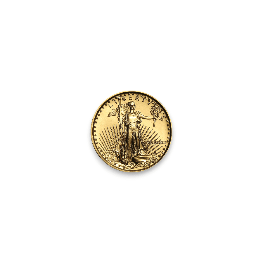 The 1991 1/10 oz American Gold Eagle Coin, a valued piece in the American Gold Eagle series, is produced by the United States Mint. Comprising 1/10th of an ounce of gold, it has a purity of 22 karats, equivalent to .9167 fineness. The coin showcases the iconic Saint-Gaudens obverse design featuring Lady Liberty with a torch and olive branch, epitomizing freedom and hope. The reverse, created by Miley Busiek, displays a family of eagles, representing American unity and strength. In 1991, the mintage for the 1/10 oz American Gold Eagle was approximately 165,200 coins. This mintage level makes the 1991 edition a popular choice among collectors and investors, who appreciate it for its gold content, historical significance, and artistic merit within the esteemed Gold Eagle series.