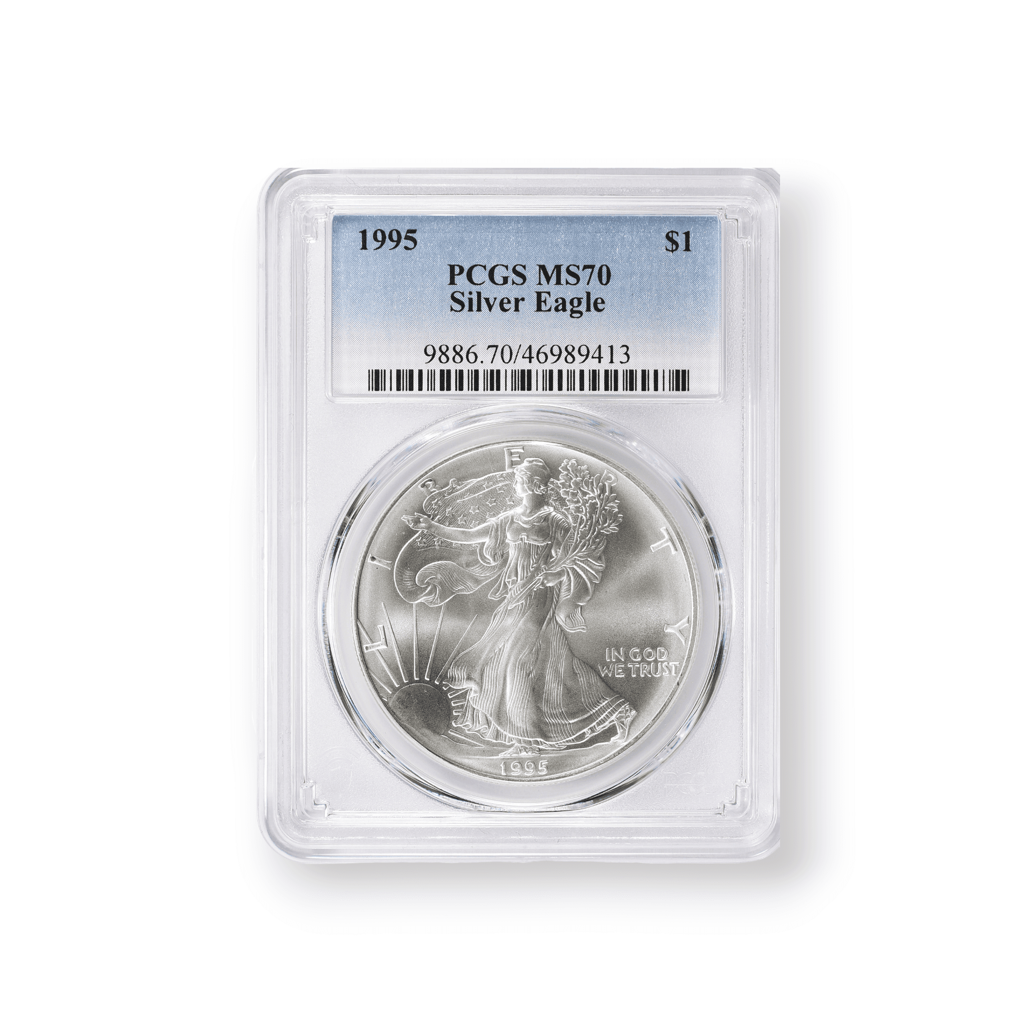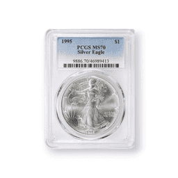 The 1995 $1 American Silver Eagle, certified by PCGS, represents a valuable addition to any coin collection or investment portfolio. Minted from one ounce of .999 fine silver, it features the iconic Walking Liberty design by Adolph A. Weinman on the obverse, a classic symbol of American freedom and idealism. The reverse is graced by John Mercanti's heraldic eagle design, a representation of the nation's strength and unity. With a mintage of 4,672,051 pieces, the PCGS certification ensures the coin's quality and authenticity, affirming its appeal and value to both numismatists and silver investors.