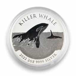 The 2 oz Australian Silver Killer Whale coin, minted by the Perth Mint with a .9999 fine silver purity, is a striking tribute to one of the ocean's most majestic and powerful creatures. Issued in random dates, this beautifully crafted coin is part of the Perth Mint's renowned series celebrating Australia's marine biodiversity. The coin features an intricately detailed depiction of a killer whale in its natural oceanic habitat, showcasing the Perth Mint's commitment to excellence in design and minting quality. The obverse of the coin bears the effigy of Queen Elizabeth II, affirming its status as legal tender under Australian law. This 2 oz silver coin is not only a valuable investment for its fine silver content but also a collectible piece of art that highlights the importance of marine conservation and the beauty of the natural world. Collectors and investors alike cherish this coin for its purity, artistic value, and the message of environmental stewardship it represents, making it a sought-after piece in the world of numismatic wildlife conservation.