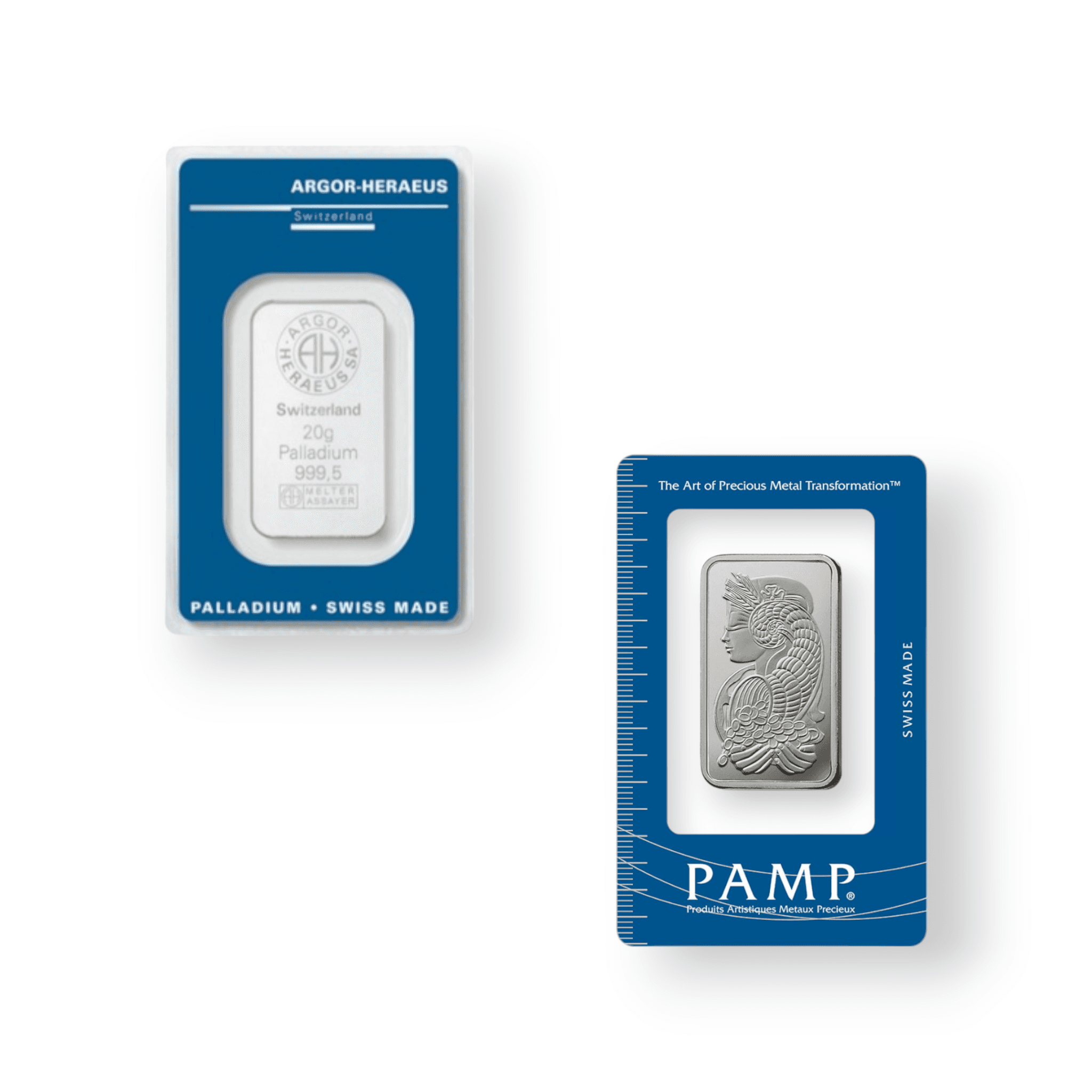 The 20 Gram Palladium Bar, sealed in a carded assay with a .9995 fine purity from accredited brands, offers a strategic investment opportunity in the precious metals market. Produced by some of the most reputable and globally recognized refineries, this bar ensures top-notch quality and palladium refining standards. It comprises 20 grams of palladium, prized for its rarity and essential industrial uses, with a purity level of 99.95%. The inclusion of a carded assay not only protects the bar but also certifies its authenticity, displaying important details such as weight, purity, and a unique serial number for secure verification. Ideal for investors looking to add a moderate yet valuable amount of high-purity palladium to their portfolios, the 20 Gram Palladium Bar combines the advantages of a tangible asset with the reliability and assurance of quality from leading refineries, making it a compelling choice for diversifying investments with precious metals.