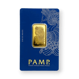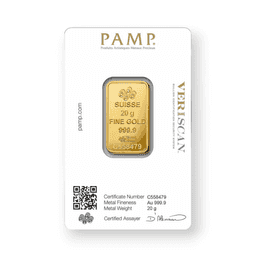 The 20 Gram Pamp Gold Bar, with a .9999 fine purity and sealed in an assay card, is a premium offering from PAMP Suisse, renowned for its exceptional quality in precious metal refining. This bar contains 20 grams of 99.99% pure gold, showcasing PAMP's commitment to producing high-grade bullion products. The bar is often embellished with PAMP's signature designs, which could range from intricate cultural motifs to sleek, modern styles, adding to its aesthetic appeal. Encased in a tamper-evident assay card, the bar is both protected and authenticated, with the card providing essential details like weight, purity, and a unique serial number for added security and verification. This bar is particularly sought after in the precious metals market for its combination of significant gold content, the reputable craftsmanship of PAMP Suisse, and the enhanced security features provided by the assay card, making it a valuable investment for both collectors and those seeking to diversify their portfolio with high-purity gold.
