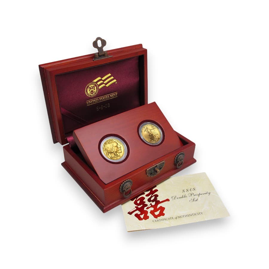 2008 (08/08/08) Double Prosperity American Gold Eagle & Buffalo 1/2 oz Gold Coin Set with Box & COA