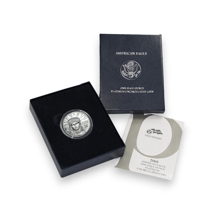 2008-W 1/2 oz Burnished American Platinum Eagle .9995 Fine $50 Coin (W/ Box & COA)