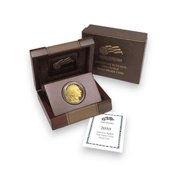 The 2010-W 1 oz Proof $50 American Gold Buffalo, crafted in .9999 fine gold, is a prominent piece in the numismatic field with a mintage of 49,263. This coin is an integral part of the American Gold Buffalo series, which the U.S. Mint started in 2006. The 2010 edition marks the fifth year of this series. The coin proudly bears James Earle Fraser's classic designs from the 1913 Type I Buffalo nickel. The obverse features a Native American profile, while the reverse depicts an American buffalo, modeled after Black Diamond, a famous bison from the Central Park Zoo. Identified by the 'W' mint mark, denoting its production at the West Point Mint, this proof coin is delivered in its original mint packaging, complete with a box and a Certificate of Authenticity. Its appeal to collectors and investors is heightened by its artistic design, historical significance, and relatively limited mintage.