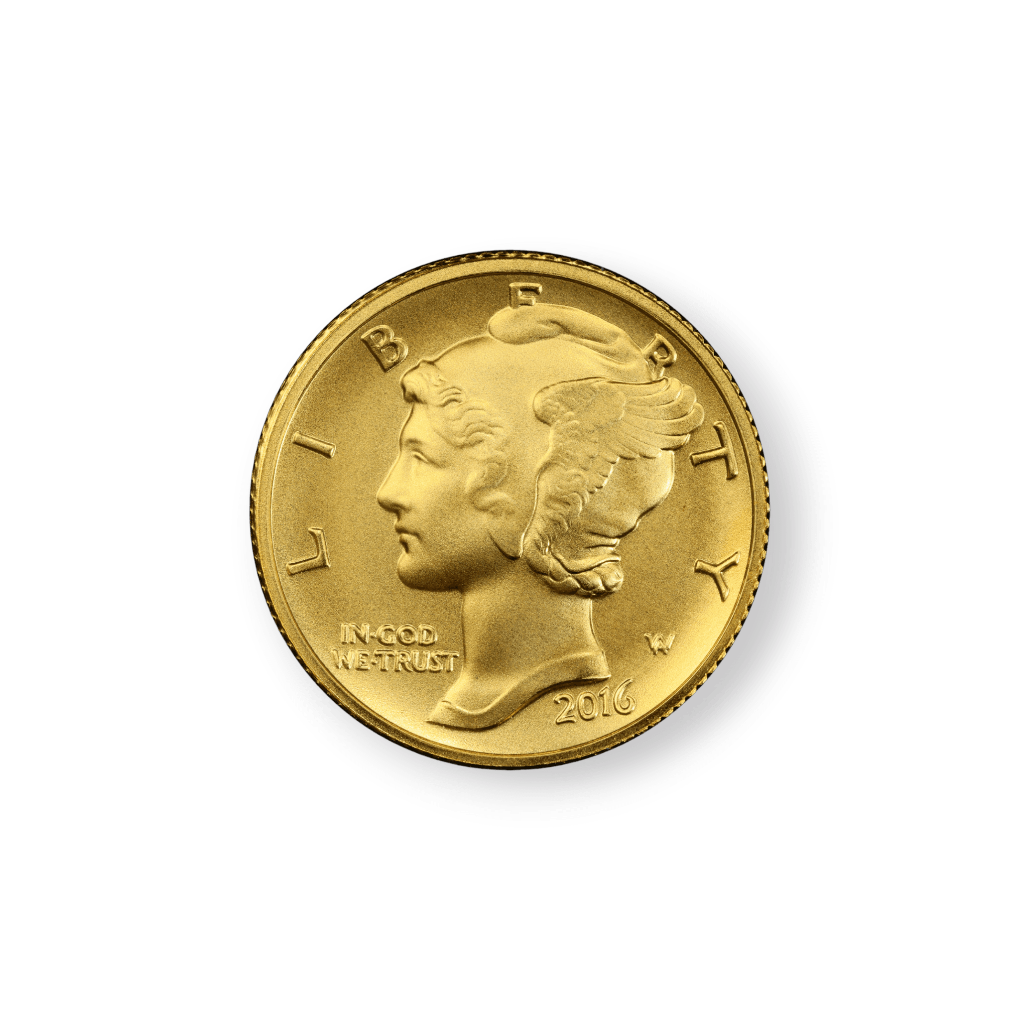 2016-W 1/10 oz Gold Mercury Dime Centennial Coin .9999 Fine (w/Box & COA)