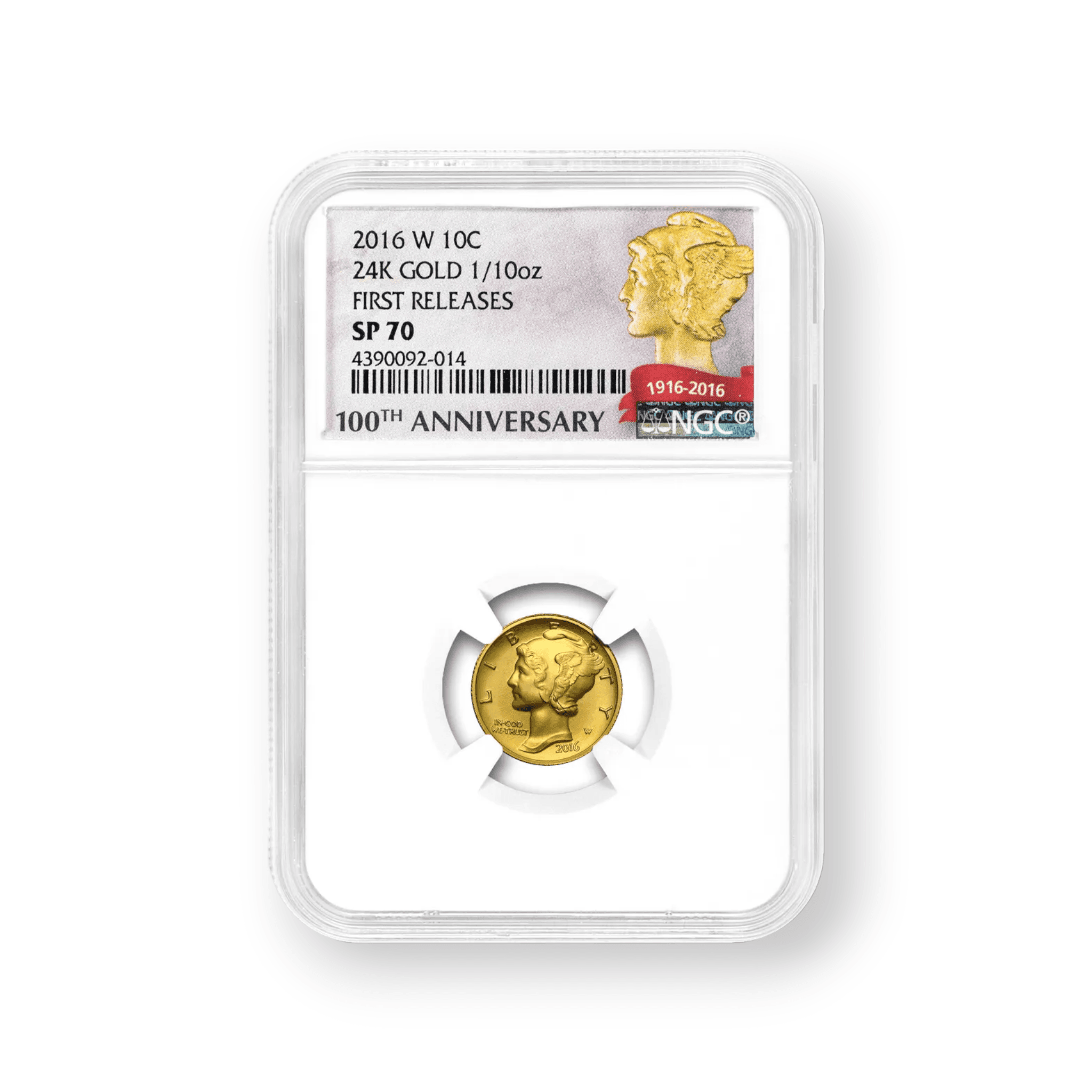 2016-W 1/10 oz Mercury Dime Centennial Gold Coin NGC Certified
