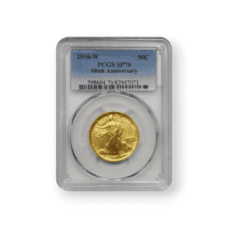 The 2016-W Walking Liberty Half Dollar Centennial Gold Coin, struck by the West Point Mint and distinguished by the 'W' mint mark, is a magnificent tribute to Adolph A. Weinman's original 1916 design. Minted from .9999 fine 24-karat gold, it has a substantial AGW of 0.50 troy ounces and is part of a limited mintage of just 70,000 pieces. PCGS certification confirms the impeccable condition and authenticity of each coin, which is preserved in a secure slab with its grade and unique certification number prominently displayed. The coin's obverse features the iconic Walking Liberty, emblematic of the nation's forward march toward freedom, while the reverse bears the image of an eagle perched on a rocky crag, signifying America's resilience. This centennial edition is a prized possession for collectors and investors alike, encapsulating a century of numismatic legacy with the luster of gold.