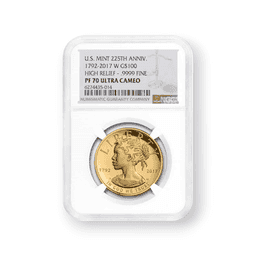 The 2017-W American Liberty High Relief $100 Gold Coin is a special collector's item, strikingly minted in one ounce of 24-karat gold which is certified by NGC for its purity and quality. This coin boasts a high relief design that exemplifies the peak of modern minting technology and artistry. With its NGC certification, collectors are assured of its condition and authenticity. The production of this coin was limited, with only 30,823 of the maximum 100,000 minted pieces sold, making it a relatively rare and valuable addition to any collection. Its design and limited mintage highlight its significance as a modern numismatic treasure.