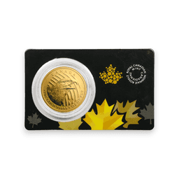 The 2018 1 oz Gold Canadian Golden Eagle coin, part of the Royal Canadian Mint's distinguished "Call of the Wild" series, is an exceptional collectible with a .99999 fine purity, sealed in an assay card. This coin contains one ounce of gold at an extraordinarily high purity level of 99.999%, placing it among the elite in gold coinage. The 2018 edition features the golden eagle, a majestic bird of prey known for its power and grace, masterfully depicted to capture the essence of one of Canada's most impressive wild birds. The intricate design showcases the eagle in stunning detail, reflecting the Mint's commitment to artistic excellence. Each coin is securely enclosed in a tamper-evident assay card, which serves as a certificate of authenticity, providing crucial information such as the coin's weight, its exceptional purity, and a unique serial number for verification. The 2018 1 oz Gold Canadian Golden Eagle coin is highly sought after by collectors and investors for its exquisite craftsmanship, the remarkable purity of gold, and the prestigious reputation of the Royal Canadian Mint, making it a valuable addition to any collection of premium gold coins.