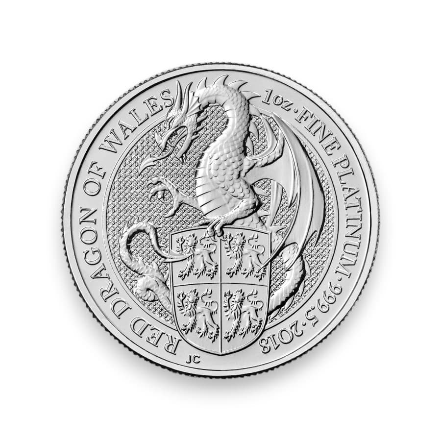 2018 1 oz Platinum Great Britain Queen's Beast Red Dragon .9995 Fine £100 Coin
