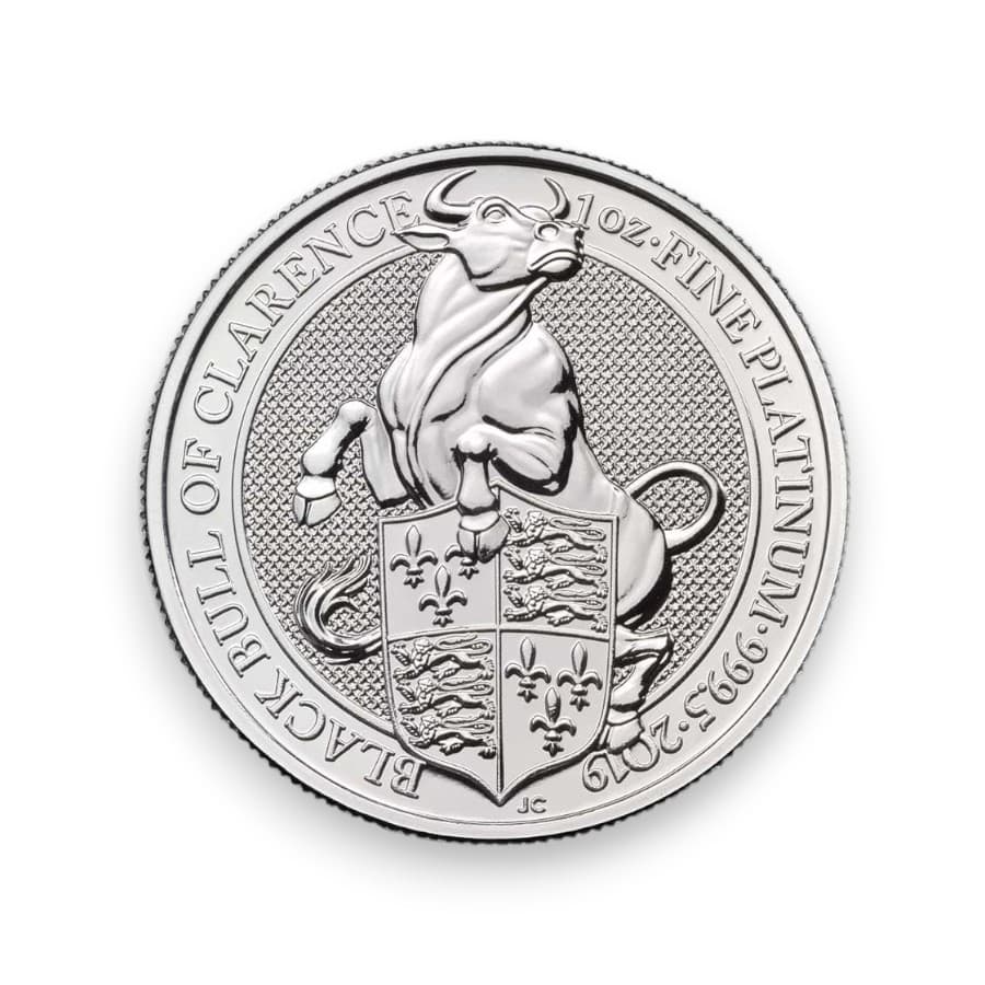 2019 1 oz Platinum Great Britain Queen's Beast Black Bull .9995 Fine £100 Coin
