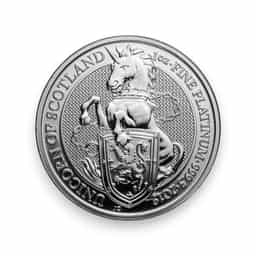 The 2019 1 oz Platinum Great Britain Queen's Beast Unicorn Coin is an exquisite piece, minted in .9995 fine platinum. This coin is part of the prestigious Queen's Beast series, which celebrates the heraldic beasts that stood guard at Queen Elizabeth II's coronation. The obverse features the fifth definitive portrait of Queen Elizabeth II, designed by Jody Clark, and includes the coin's legal tender value of £100. The reverse showcases the majestic Unicorn of Scotland, one of the ten heraldic beasts, with intricate detailing that highlights the creature's strength and elegance. Weighing 1 oz, the coin contains approximately 31.1035 grams of pure platinum. The high purity and limited mintage enhance its appeal to both collectors and investors. The 2019 1 oz Platinum Queen's Beast Unicorn Coin is a valuable addition to any collection, offering both historical significance and investment potential in platinum.