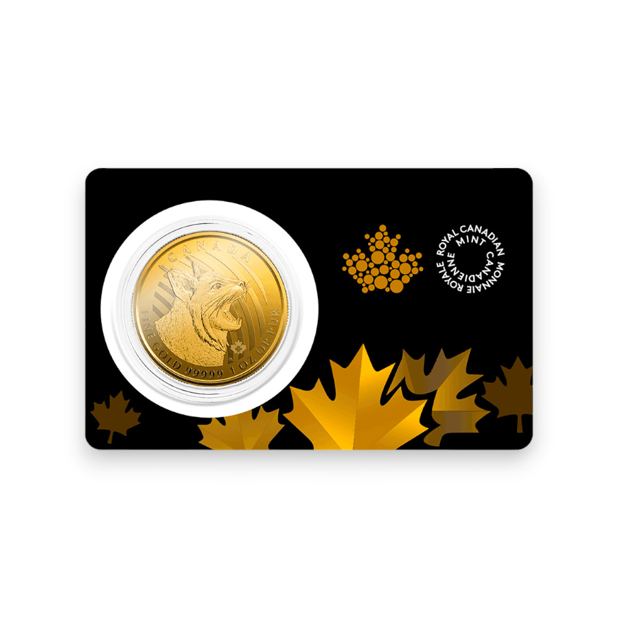 2020 1 oz Gold Canadian Bobcat .99999 Fine Sealed in Assay Card $200 Coin