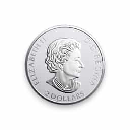 The 2020 3/4 oz Woodland Caribou Canadian Reverse Proof .9999 Fine Silver $2 Coin is a stunning addition to the Royal Canadian Mint's renowned Silver Coin series. Crafted from 99.99% pure silver, this coin boasts a reverse proof finish, which creates a mesmerizing contrast between the frosted relief and mirror-like background. The obverse features the iconic effigy of Queen Elizabeth II, while the reverse showcases a majestic Woodland Caribou, a species native to Canada's northern regions, depicted in intricate detail against a backdrop of engraved woodland scenery. With a limited mintage and a weight of 3/4 ounces, this coin is a highly sought-after collectible for both numismatists and nature enthusiasts alike, celebrating Canada's rich wildlife heritage with exceptional artistry and craftsmanship.