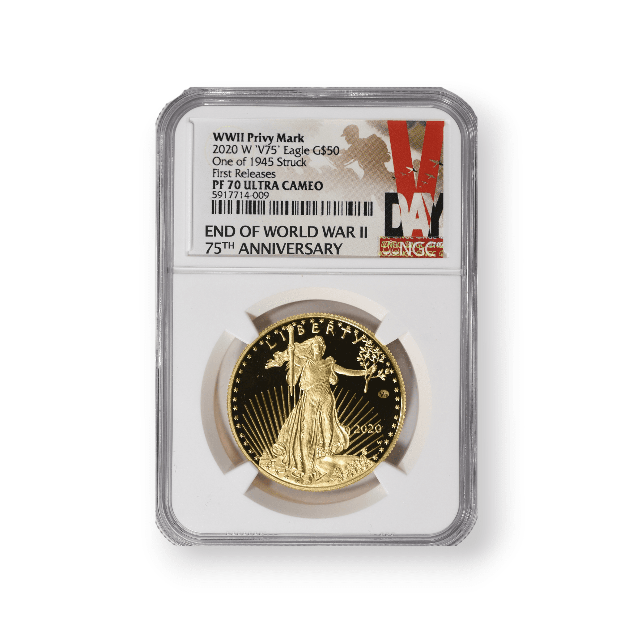 2020-W WWII American Gold Eagle V75 Privy $50 Coin NGC Certified .9999 Fine (1 of 1945 Struck)