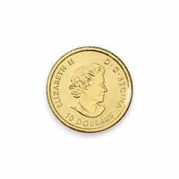 The 2021 1/4 oz Canadian Great Horned Owl .9999 Fine Gold $10 Coin is a stunning addition to the Royal Canadian Mint's "Birds of Prey" series. Crafted from .9999 pure gold, this coin weighs 1/4 troy ounce and bears a legal tender face value of 10 Canadian dollars. The reverse of the coin features a meticulously designed illustration of a Great Horned Owl perched on a branch, with its piercing eyes and distinctive ear tufts captured in intricate detail. The obverse showcases a portrait of Her Majesty Queen Elizabeth II, along with the coin's face value and year of issue. With a limited mintage, this coin is highly sought after by collectors and investors alike for its exceptional purity, unique design, and the enduring value of gold.