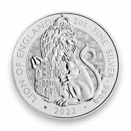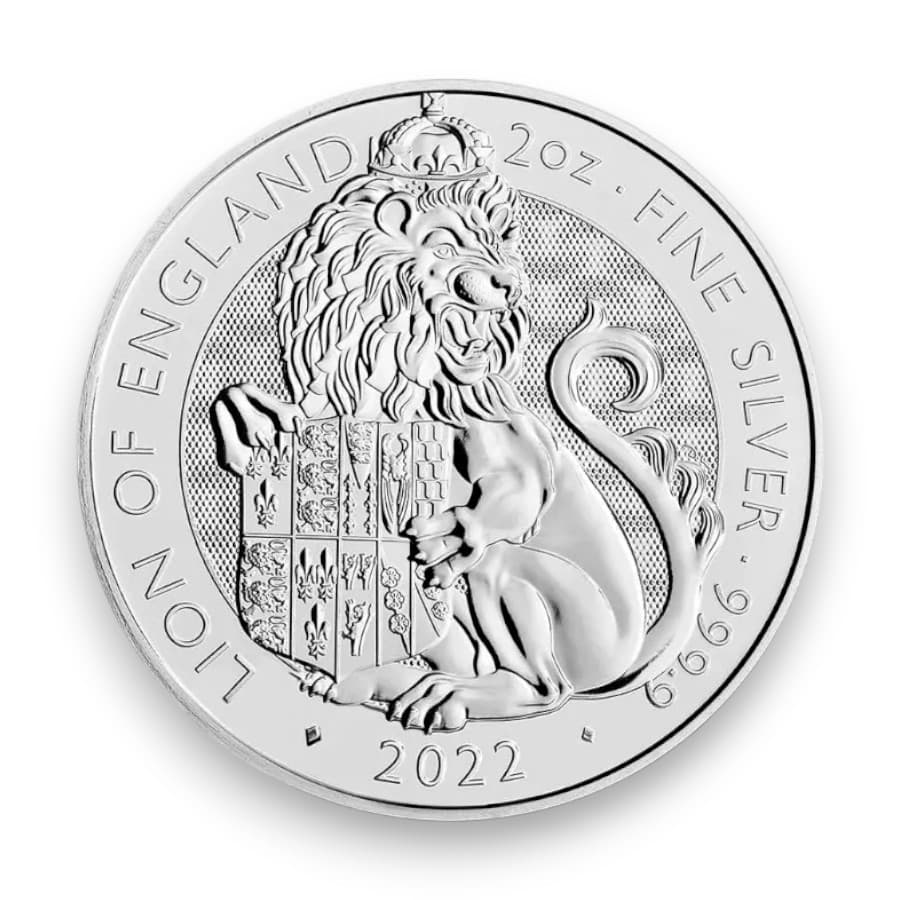 2022 2 oz Great Britain Tudor Beast Lion of England .9999 Fine Silver £5 Coin