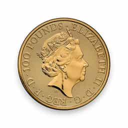 The 2022 Great Britain 1 oz Gold Little John Myths & Legends .9999 Fine £100 Coin is a distinguished addition to the Royal Mint's acclaimed Myths & Legends series. This coin celebrates Little John, one of the most beloved characters from the legendary tales of Robin Hood and his band of Merry Men. Minted in .9999 fine gold, this exquisite coin showcases the strength, loyalty, and camaraderie that Little John is renowned for, set against the iconic backdrop of Sherwood Forest. The reverse design features an intricately detailed depiction of Little John, capturing his formidable presence and his role as Robin Hood's loyal lieutenant. The obverse displays the effigy of Queen Elizabeth II, affirming its legal tender status with a denomination of £100. This release is particularly significant for collectors and investors alike, offering a piece of England's rich folklore and cultural heritage, alongside the tangible value of fine gold. The 2022 Gold Little John coin is a testament to the Royal Mint's expertise in numismatic art, combining historical significance with the allure of precious metal, making it a coveted addition to any collection.