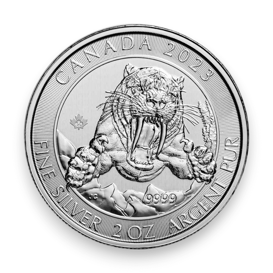 2023 Canadian 2 oz Silver Ice Age of Canada Smilodon Sabre-Tooth Cat .9999 Fine $10 Coin