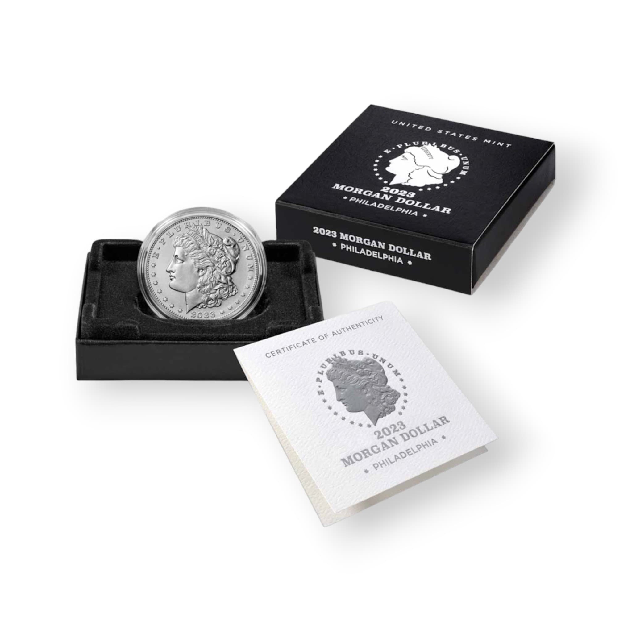 The 2023 Morgan Silver Dollar (23XE) is a highly anticipated release from the United States Mint, paying homage to the iconic Morgan Dollar design first introduced in 1878. Minted in .999 fine silver, this coin features the classic portrait of Lady Liberty on the obverse, designed by George T. Morgan, while the reverse showcases the heraldic eagle with wings spread, surrounded by a wreath. The "23XE" designation indicates that this coin is a special edition release for the year 2023. Collectors and investors alike eagerly seek out these silver dollars for their historical significance, intricate design, and the enduring appeal of silver as a precious metal. The 2023 Morgan Silver Dollar (23XE) is a must-have for those looking to add a piece of American numismatic history to their collection or to diversify their investment portfolio with a timeless and cherished silver coin.