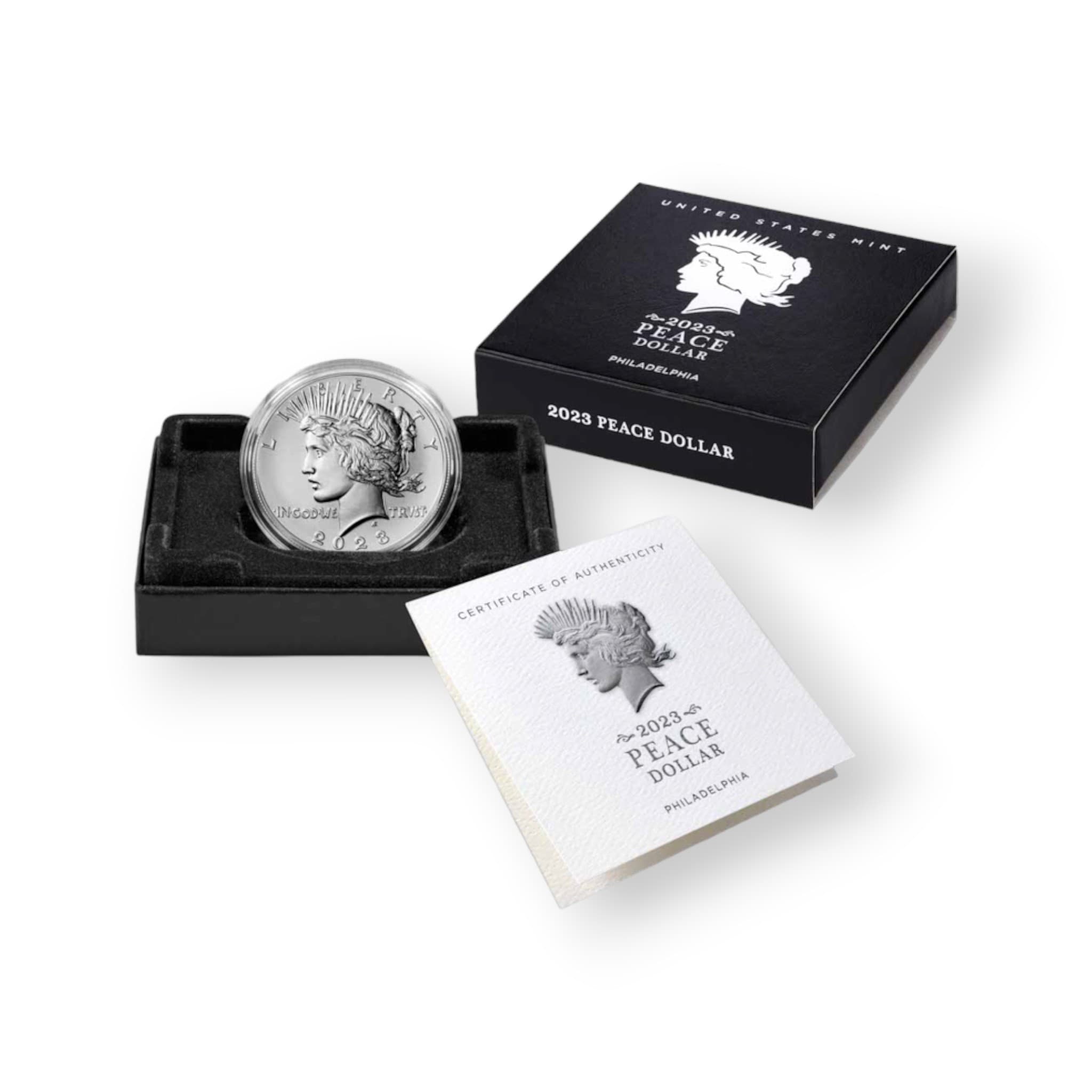 The 2023 Peace Silver Dollar (23XH) is a highly anticipated release from the United States Mint, marking the second year of the reintroduced Peace Dollar series. Originally minted from 1921 to 1935, the Peace Dollar was designed by Anthony de Francisci to commemorate the nation's hopes for peace following World War I. The 2023 edition pays homage to the original design, featuring a striking portrait of Lady Liberty on the obverse and a majestic eagle on the reverse. Minted in 99.9% pure silver, this one-dollar coin is a must-have for collectors and history enthusiasts alike. The 23XH designation indicates that this particular coin was struck at the Philadelphia Mint. With its historical significance, stunning design, and limited mintage, the 2023 Peace Silver Dollar (23XH) is sure to be a cherished addition to any collection.